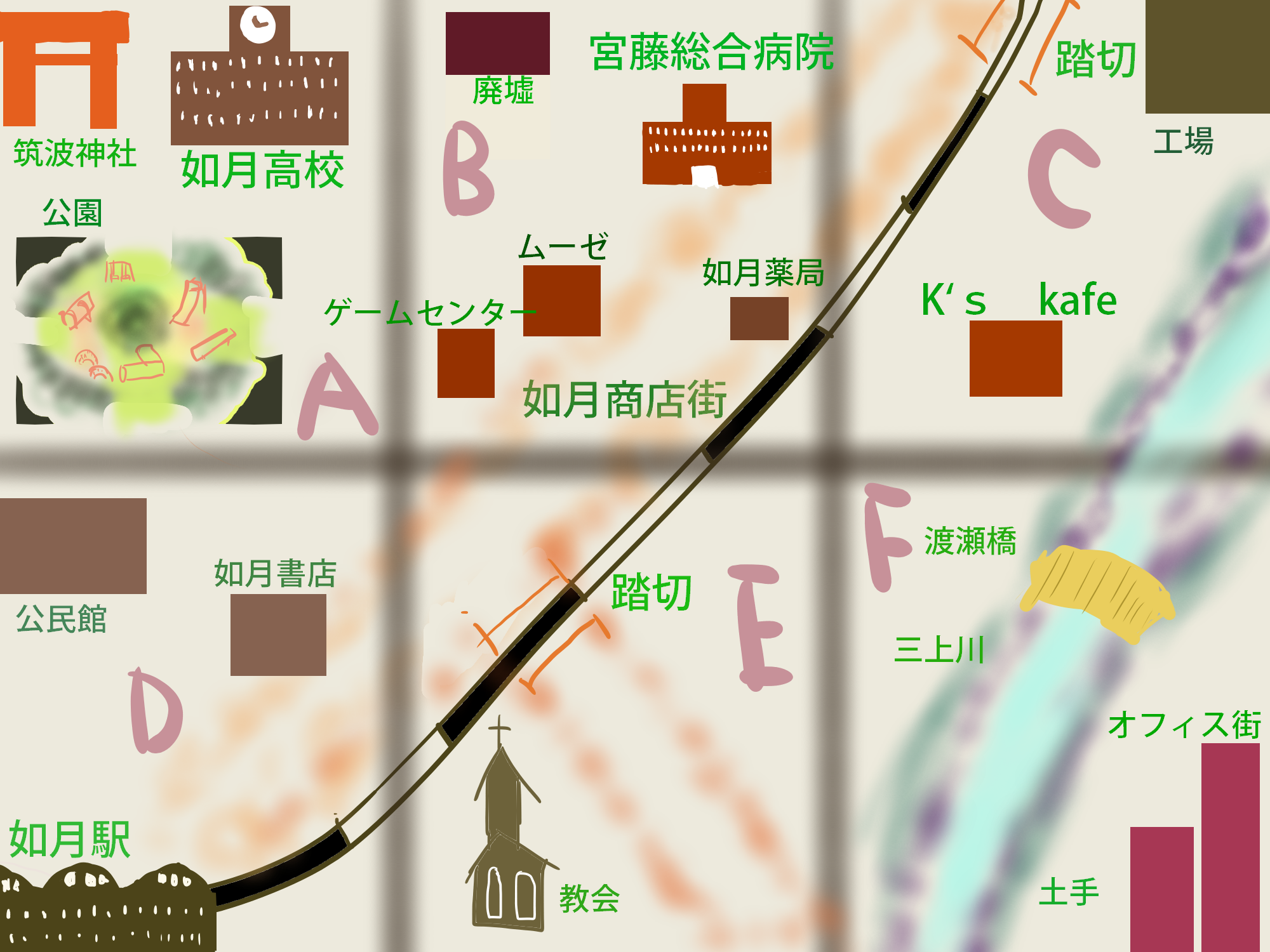 □現在地:E地区:B地区:商店街 □NG事項:心情・生死に関わる行動確定 □接続・コア:ちょっとオフ/夜がメイン